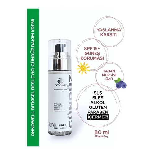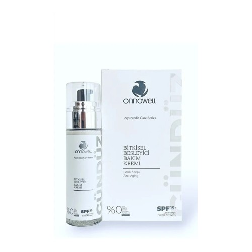 Onnowell Gündüz Bakım Kremi , Bitkisel & Ayurvedic Care Series değerli bitki özleri ve yağları, hyaluronic acid, collagen, zinc oxide, Vitamin E ve panthenol ile zenginleştirilmiş formülü sayesinde güneşin zararlı etkilerinden cildinizi korumaya yardımcı olurken aynı zamanda cildi derinlemesine nemlendirerek cildin elastikiyetinin artırılmasına, cilt dokusunun yenilenmesine, cilt tonunun eşitlenmesine ve yaşlanma etkilerinin giderilmesine yardımcı olur.